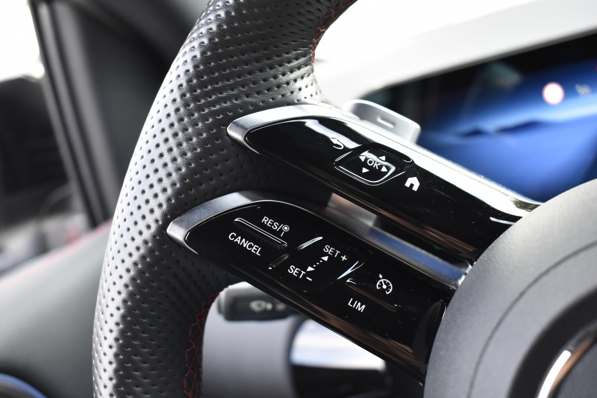 - Multifunctioneel sportstuurwiel in nappa leder, onderaan afgevlakt en chromen afwerking